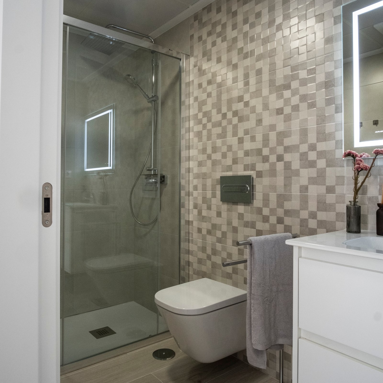 • Baños completos con: inodoro suspendido, lavabo con mueble, espejo y ducha de efecto lluvia.