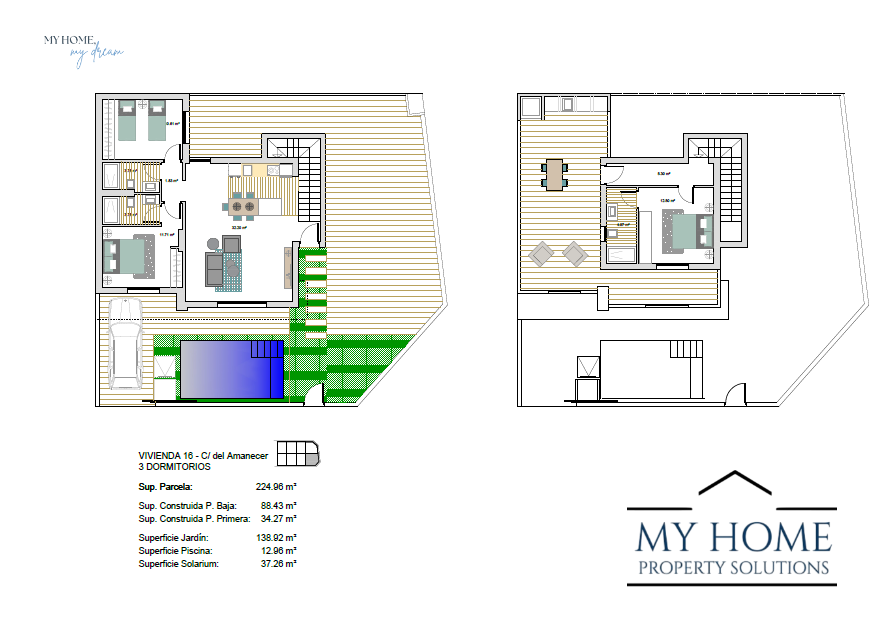 Presentamos esta villa de dos plantas con piscina privada, terraza y solárium con cocina de verano para disfrutar del sol durante todo el año.